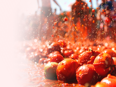 매년 8월, 스페인 부뇰에서 150톤의 토마토가 하늘을 날아요.
