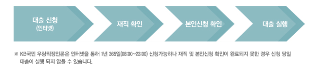 신청채널 인터넷 : KB국민카드 홈페이지 > 금융 > 카드론 > KB국민 우량직장인론 바로신청