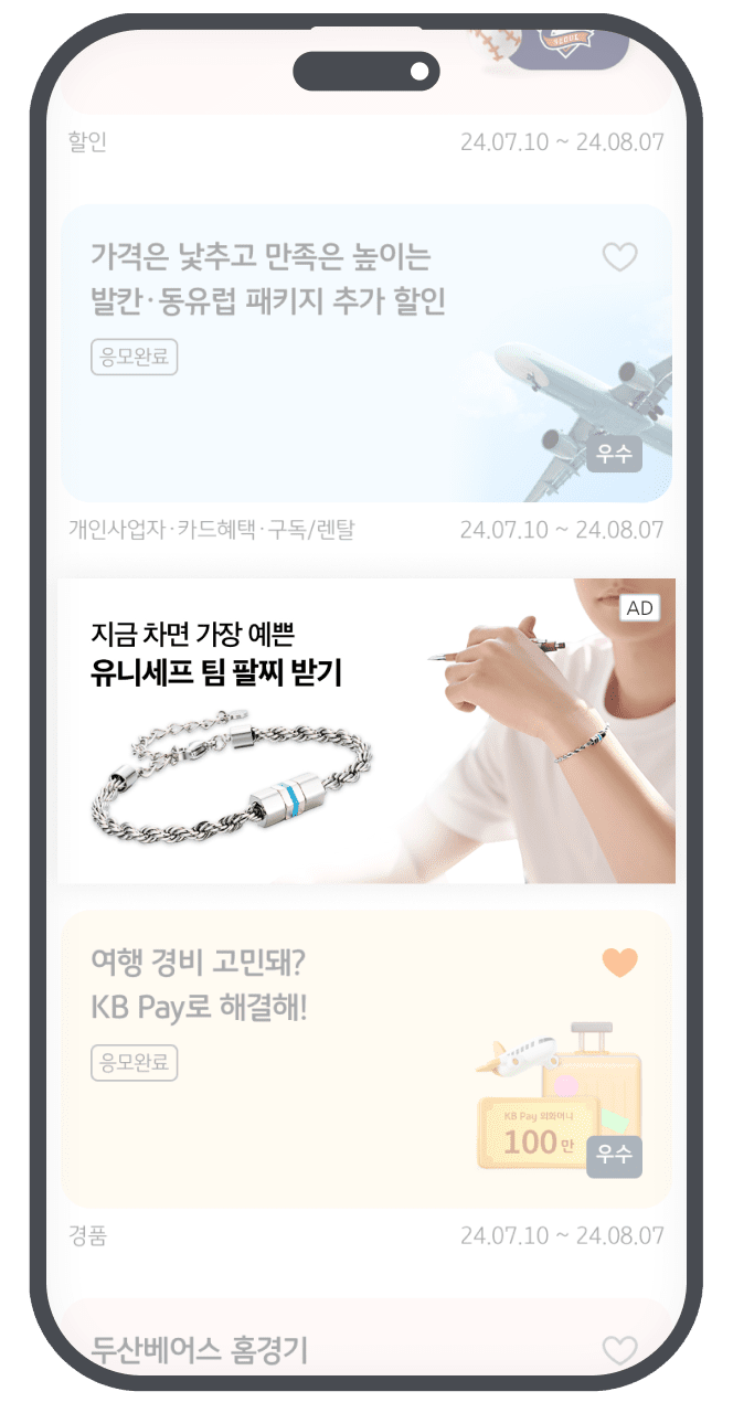 KB Pay 앱 내 다양한 위치에 노출되는 배너 광고 입니다.