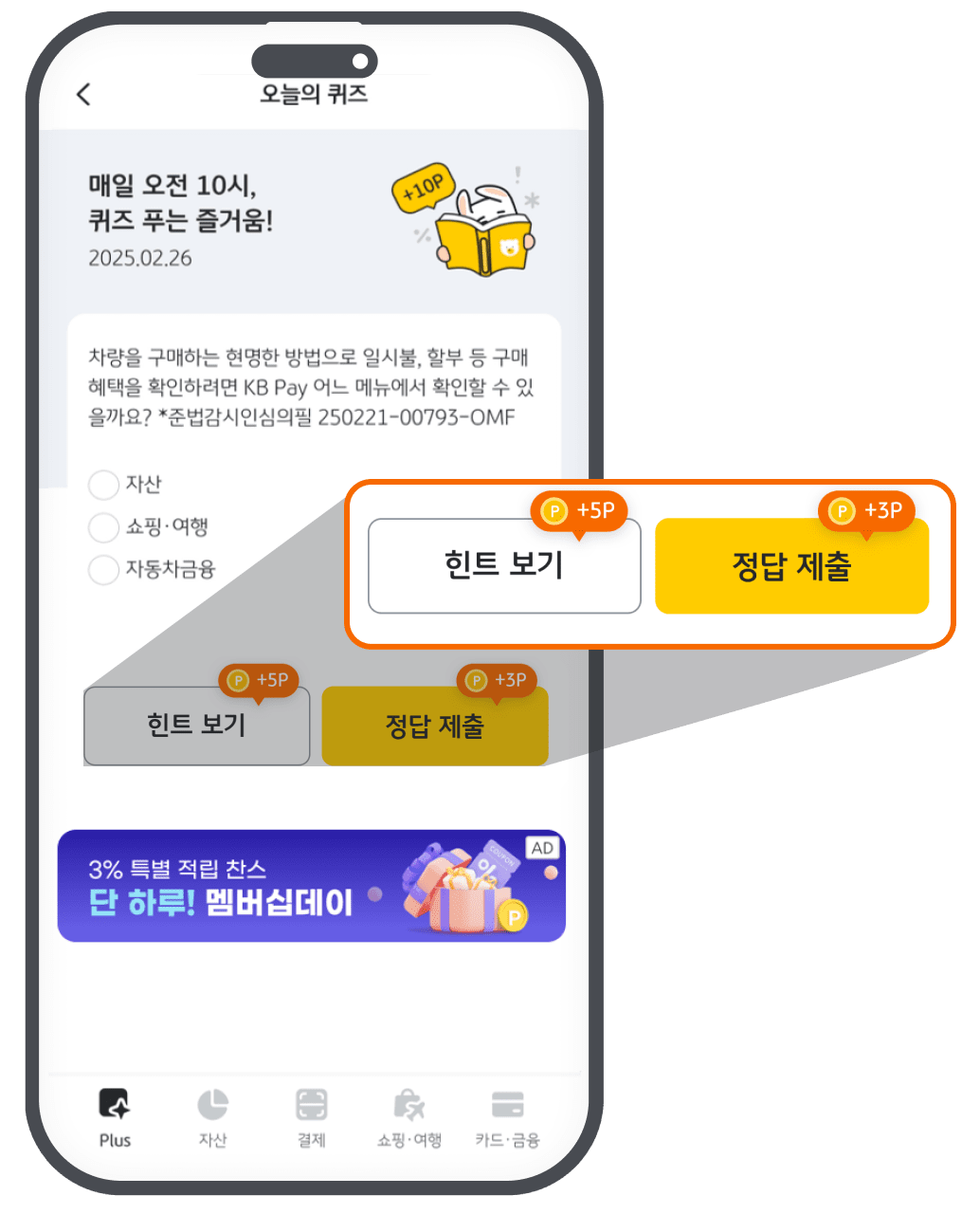 포인트리 3원을 추가 적립드려요 * 포인트리란? KB금융그룹에서 사용할 수 있는 통합 포인트로